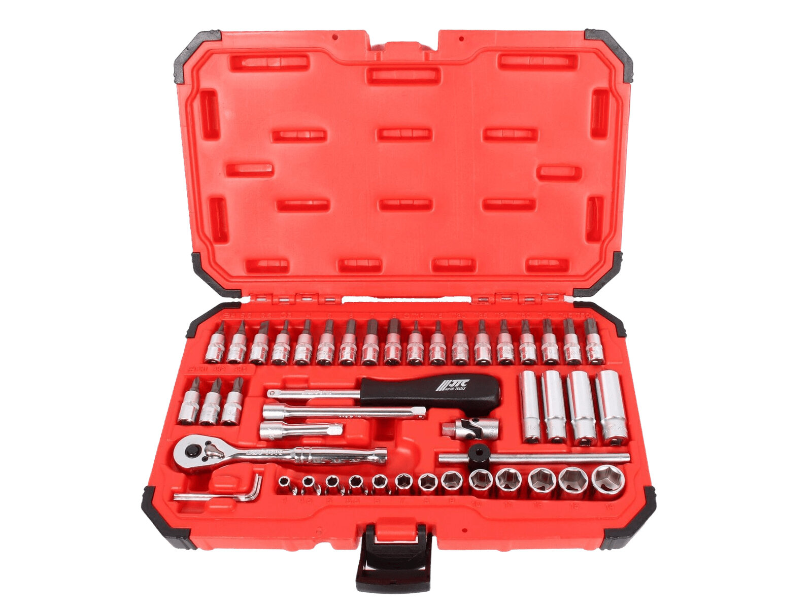 JTC JTC-H247M Набор головок торцевых и насадок 1/4" 6-ти гранных 4-14мм, Т10-Т50 (в кейсе) 47 предметов JTC