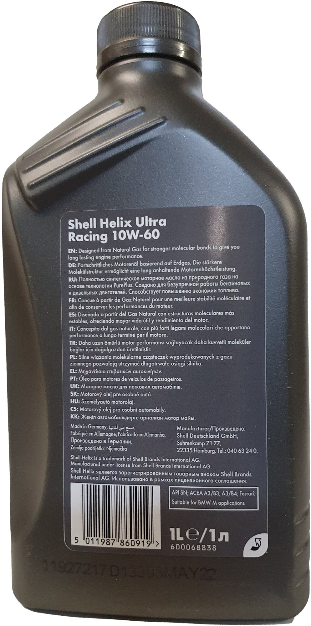 Моторное масло Shell Helix Ultra Racing 10W-60 1 л 550046411 .