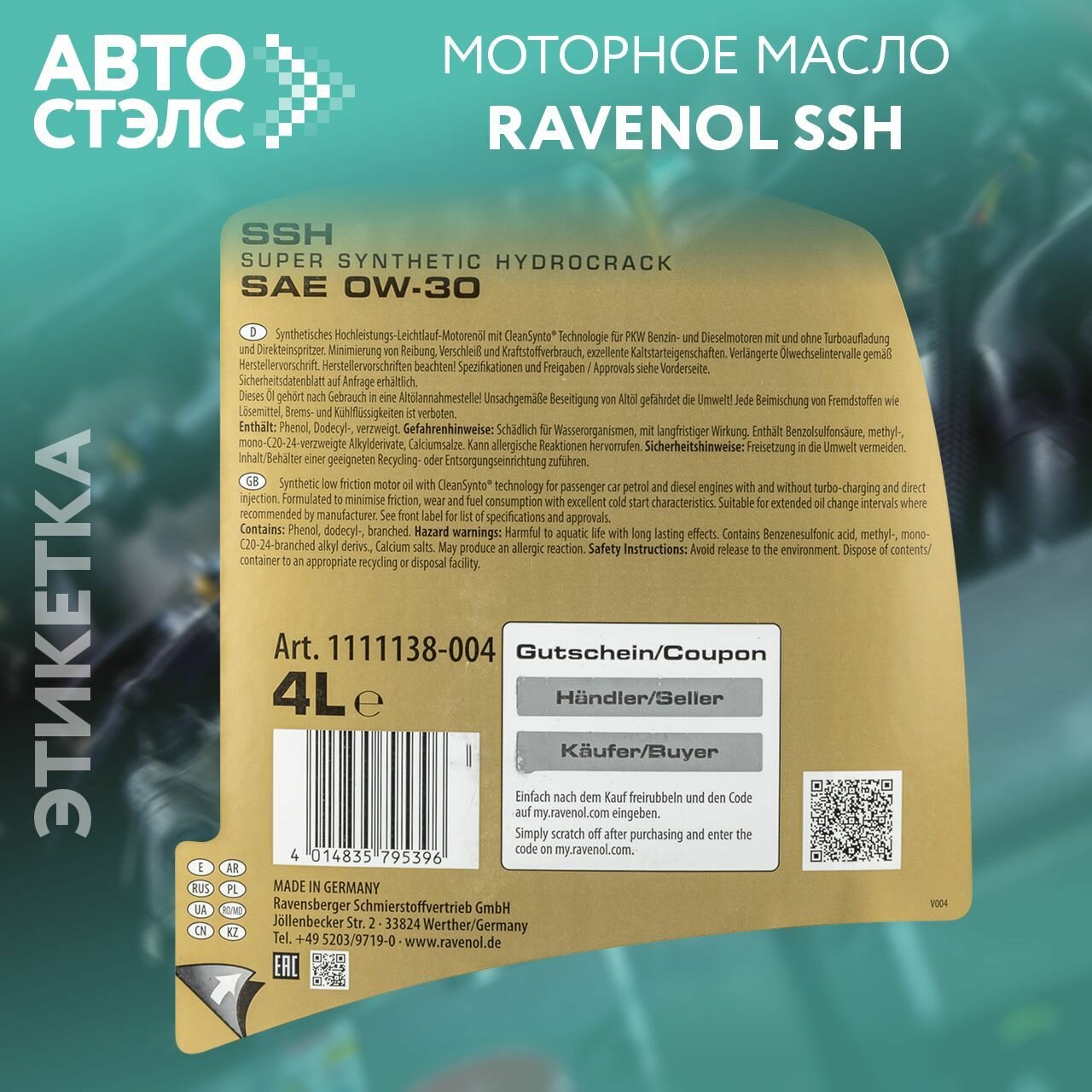 СохранитьRavenol Ssh Sm Fullsynth 0W30 4Л Ravenol арт. 4014835795396 интересное: