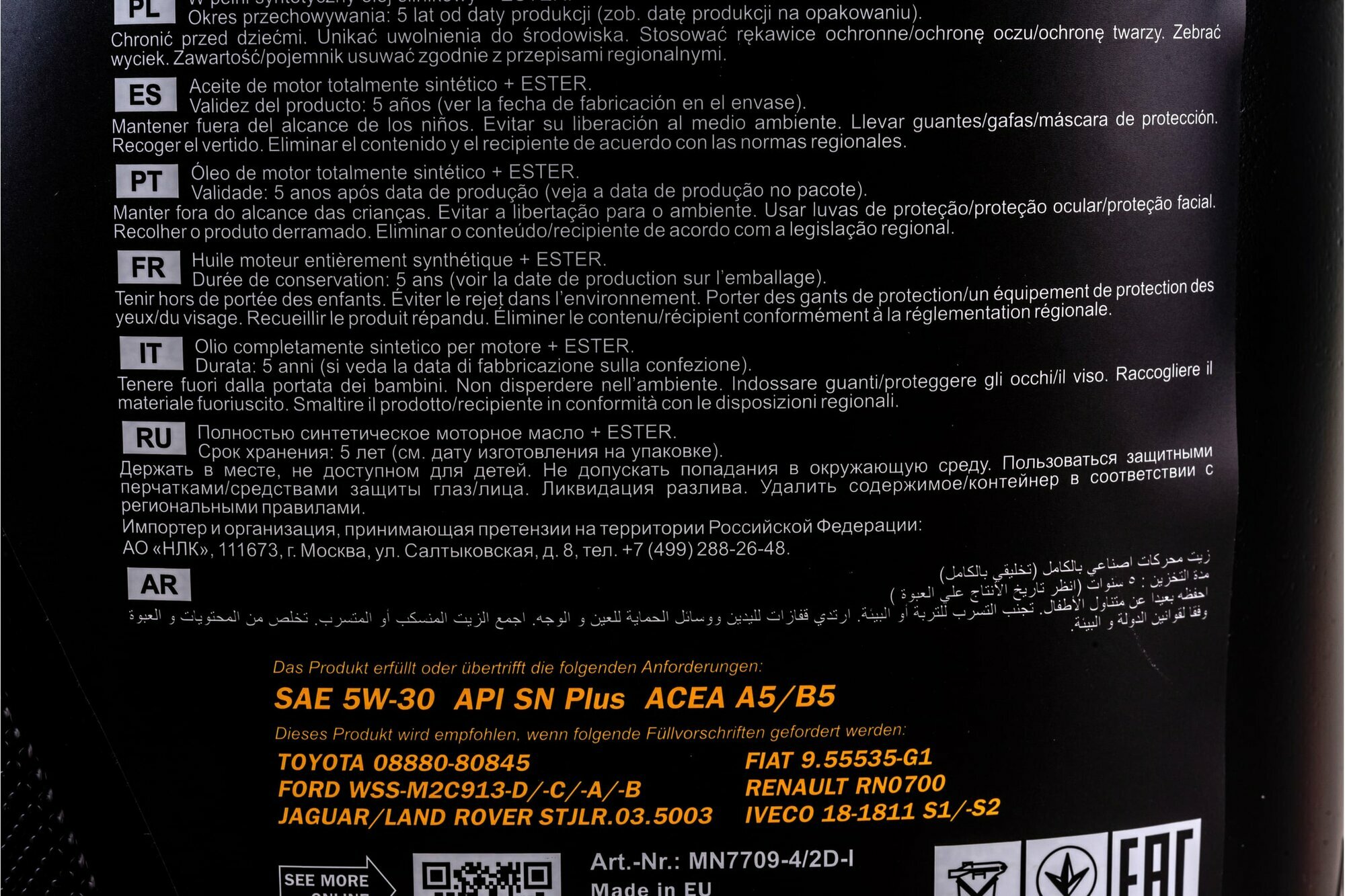 Mannol 5w-30 1l 7709 for toyota lexus моторное масло 1196