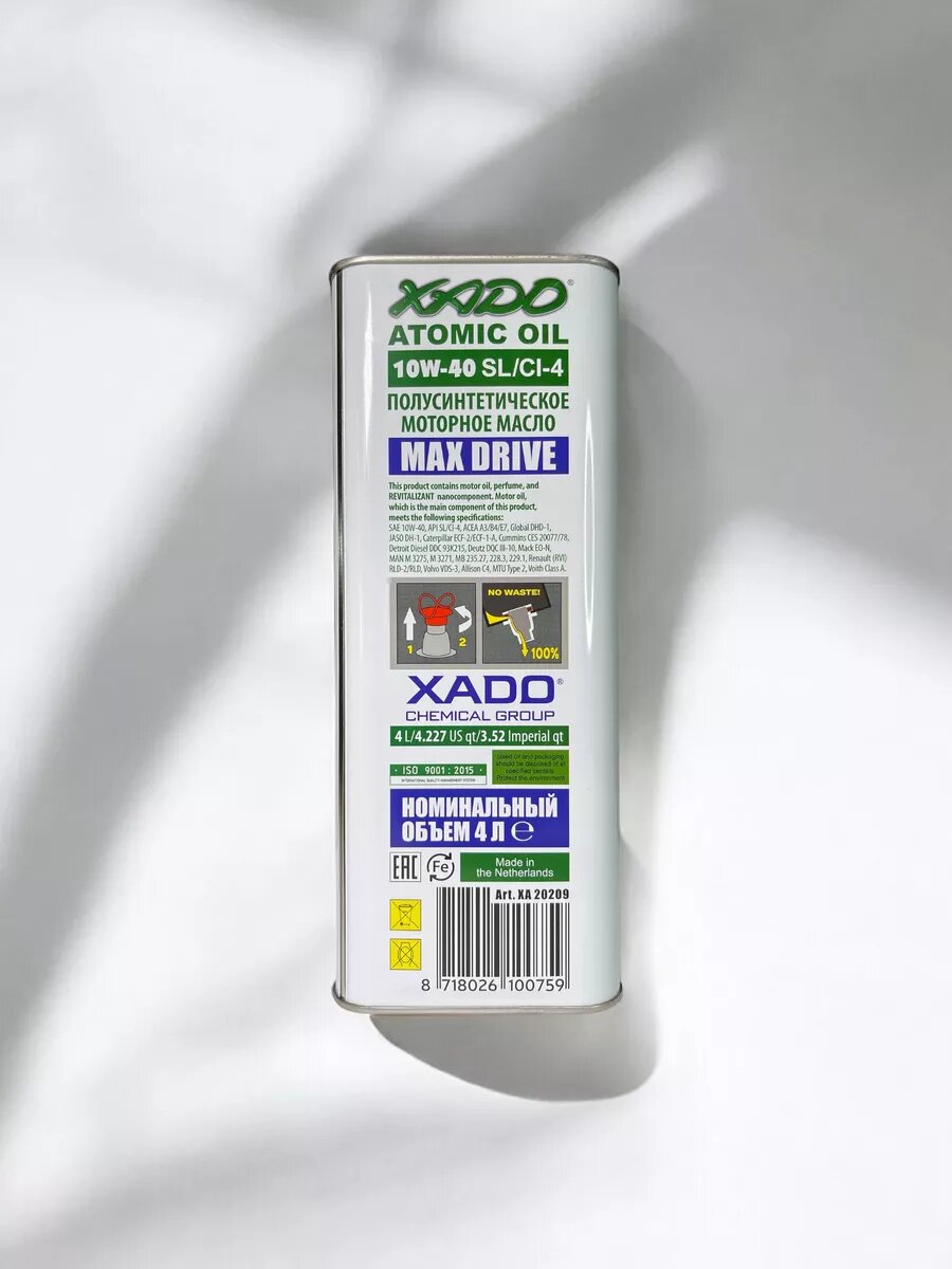Ниже Вы можете прочитать отзывы на Хадо Xado 10W40 Drive/Atomic Oil/Drive (П/С.) 4Л, ознакомится с подробными характеристиками, посмотреть интересные обзоры и фотографии на Хадо Xado 10W40 Drive/Atomic Oil/Drive (П/С.) 4Л.