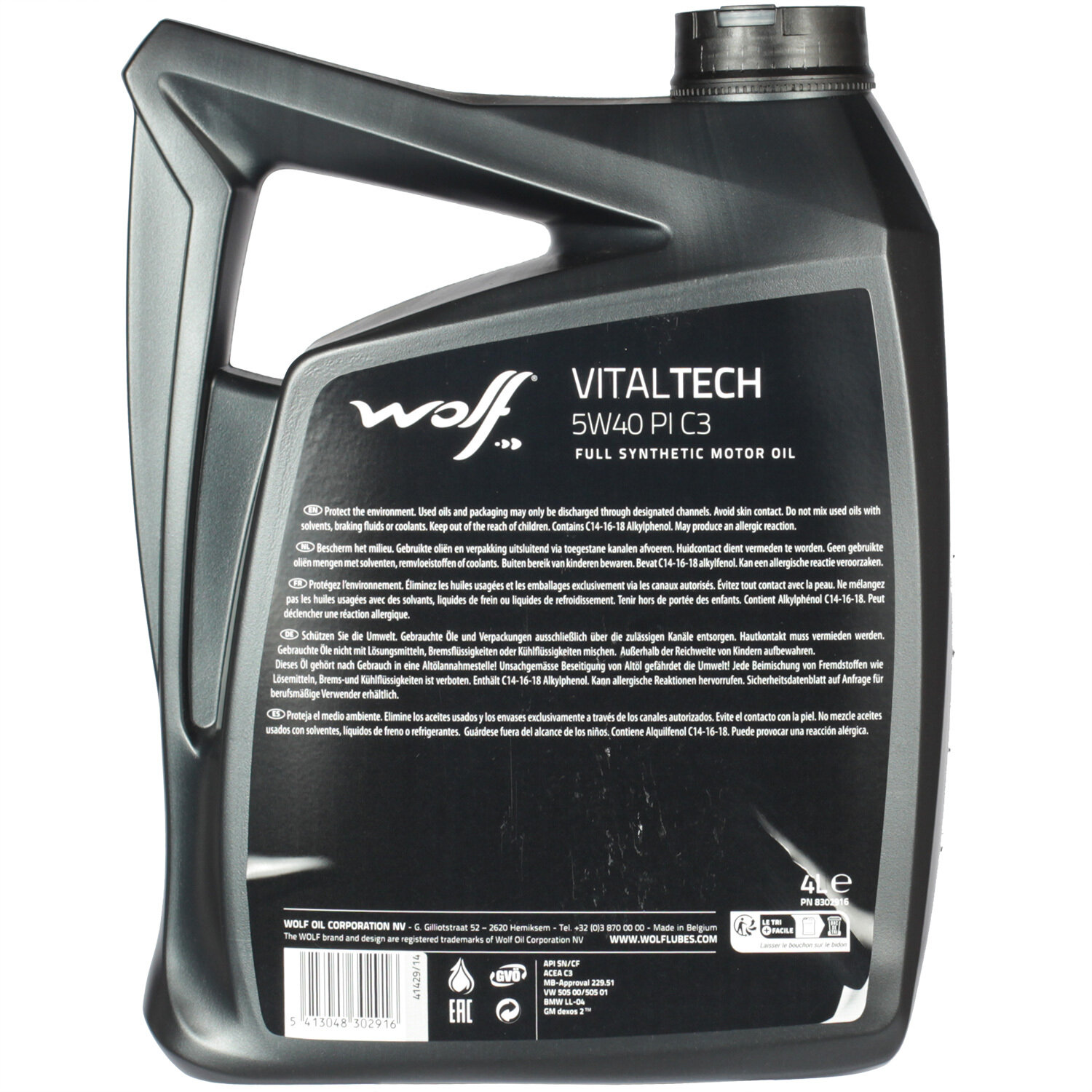 Моторное масло WOLF VITALTECH 5W40 PI C3, 4 л