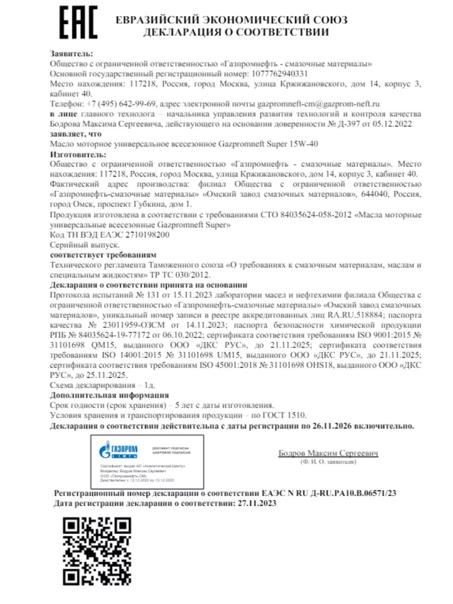 | Производитель | Газпромнефть |
