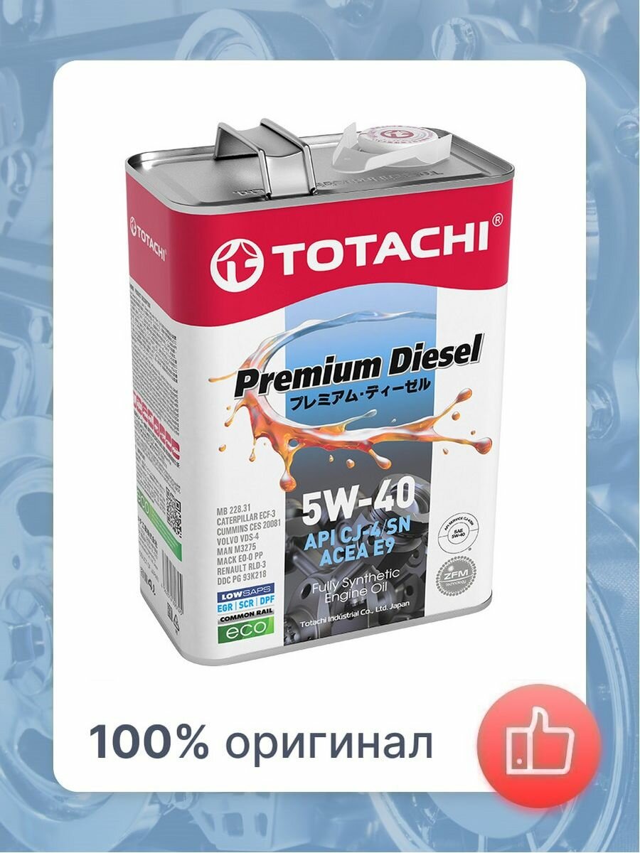 Ниже Вы можете прочитать отзывы на TOTACHI Totachi Premium Diesel 5W40 (4L) Масло Моторн.! Синтapi Cj-4/Sn, Acea E9, Mb 228.31, Man M3275, ознакомится с подробными характеристиками, посмотреть интересные обзоры и фотографии на TOTACHI Totachi Premium Diesel 5W40 (4L) Масло Моторн.! Синтapi Cj-4/Sn, Acea E9, Mb 228.31, Man M3275.