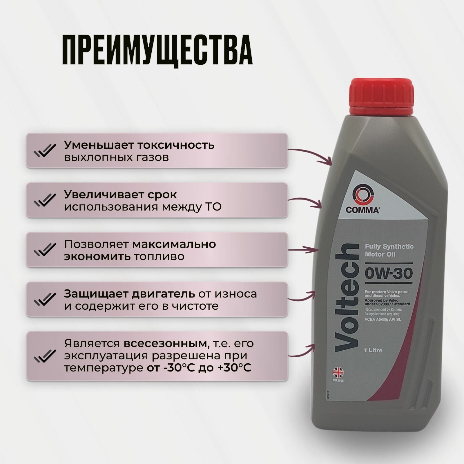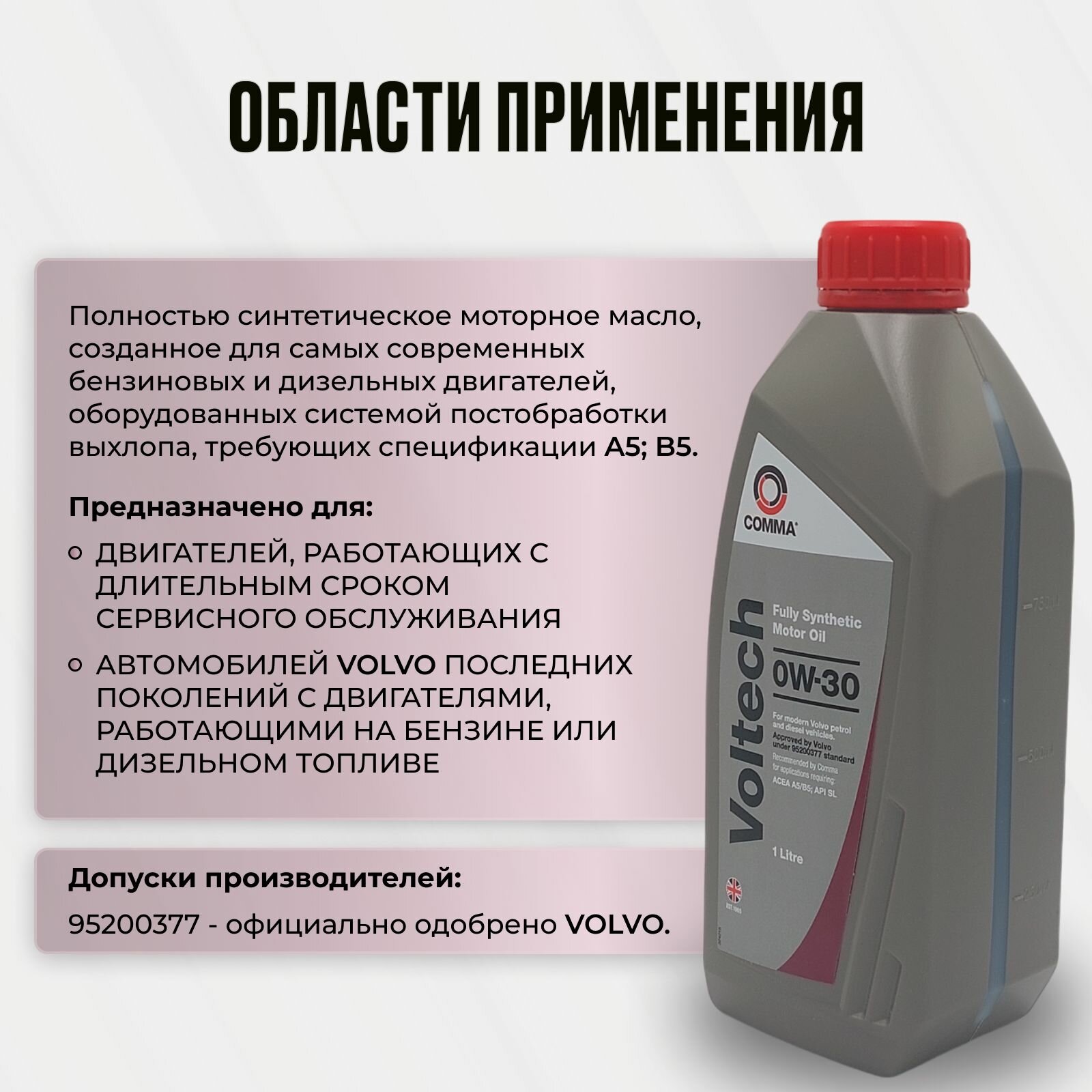 Масло моторное 0w30 comma 1л синтетика voltech (volvo), comma, vtc1l