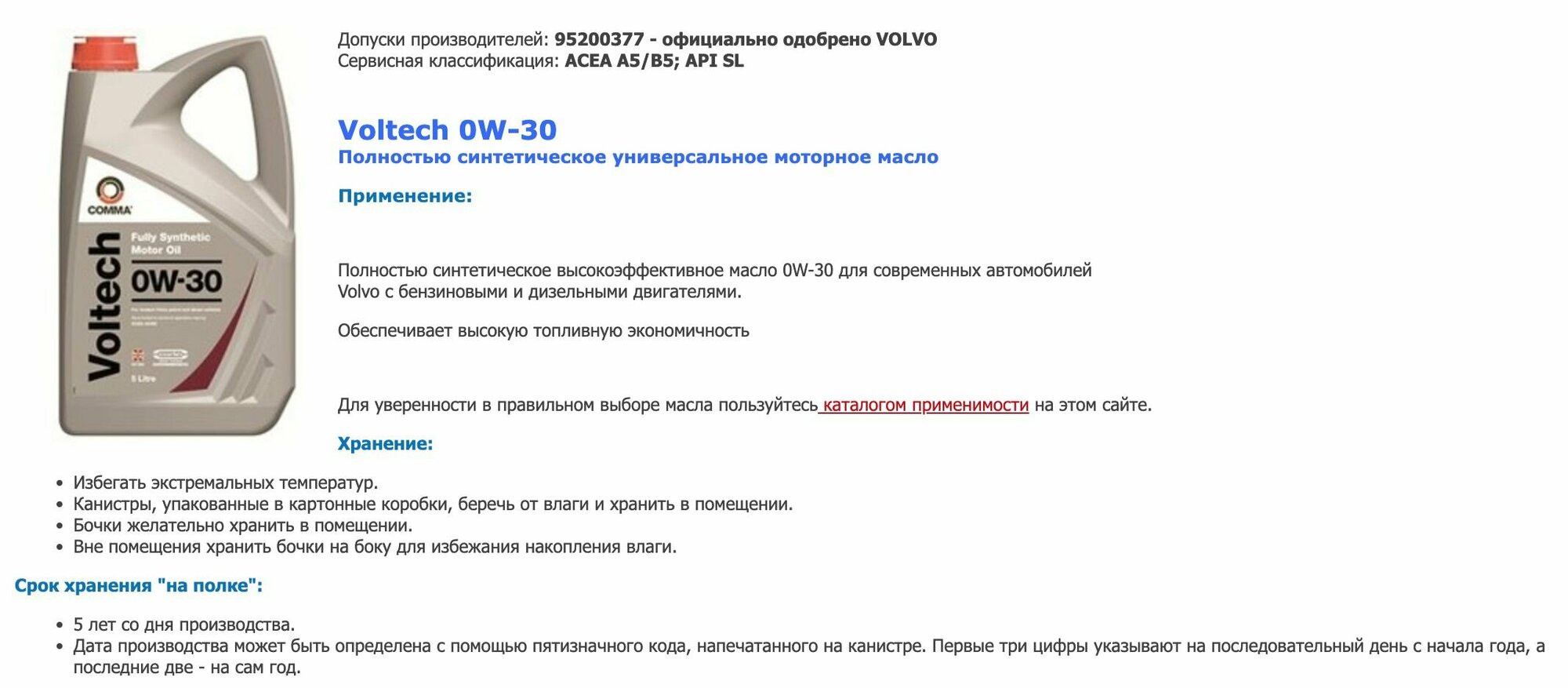 COMMA Масло Моторное Voltech For Volvo 0w-30 (Acea A5/B5) 5л