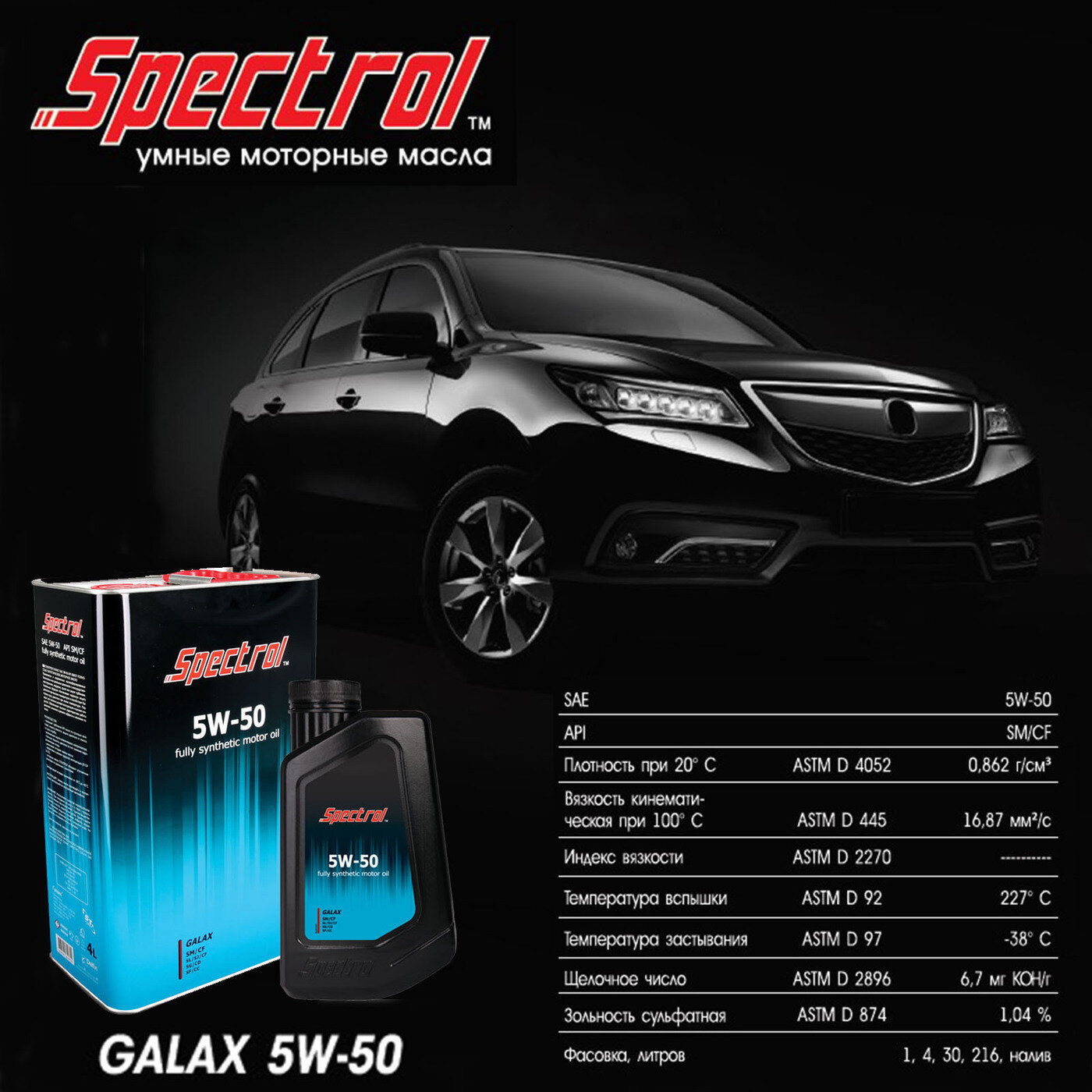 Масло моторное Спектрол Галакс 5W50 SM/CF 1л синт.