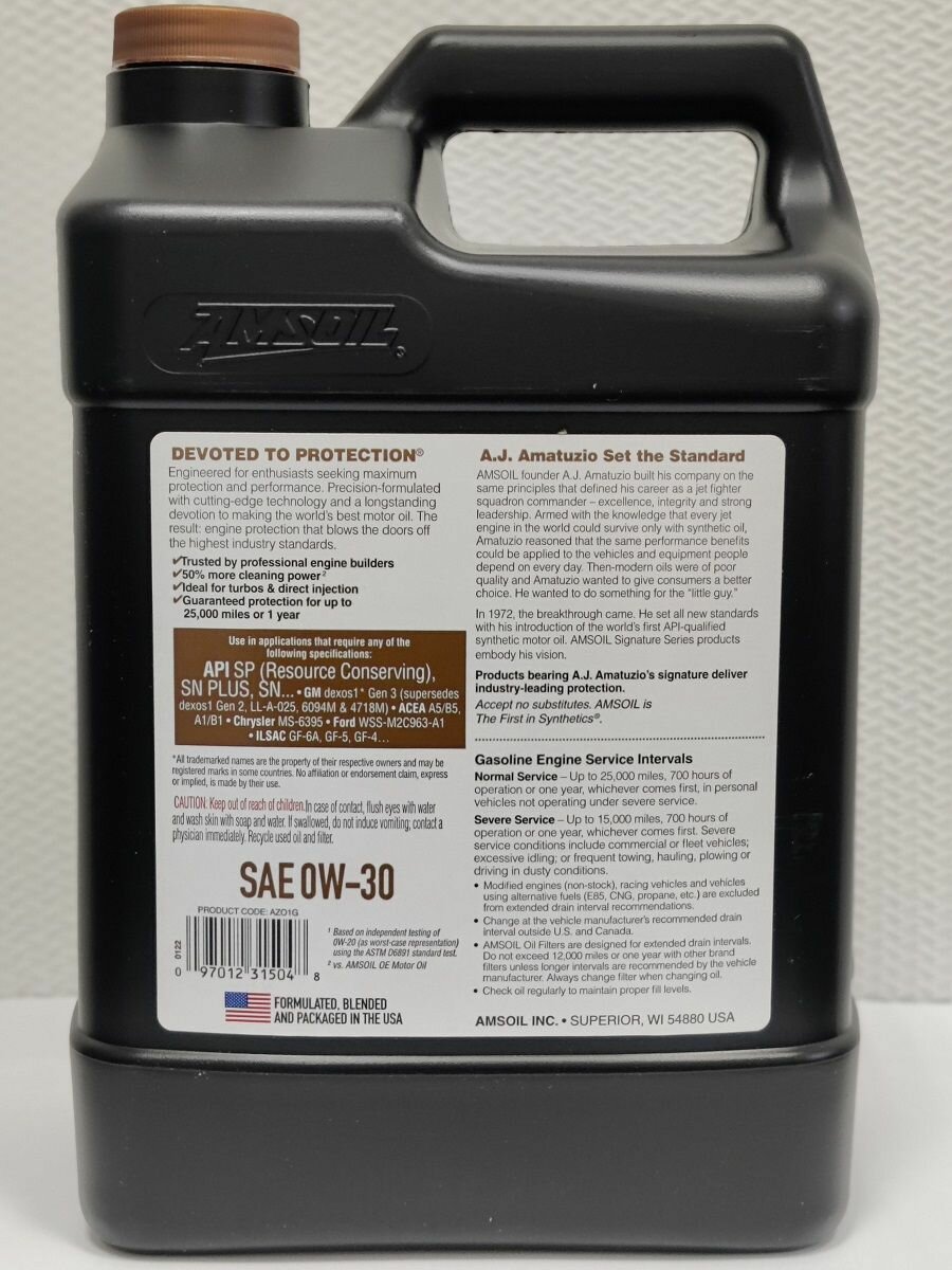 Моторное масло синтетическое AMSOIL Signature Series Synthetic Motor Oil 0W-30 3,78л. интересное: