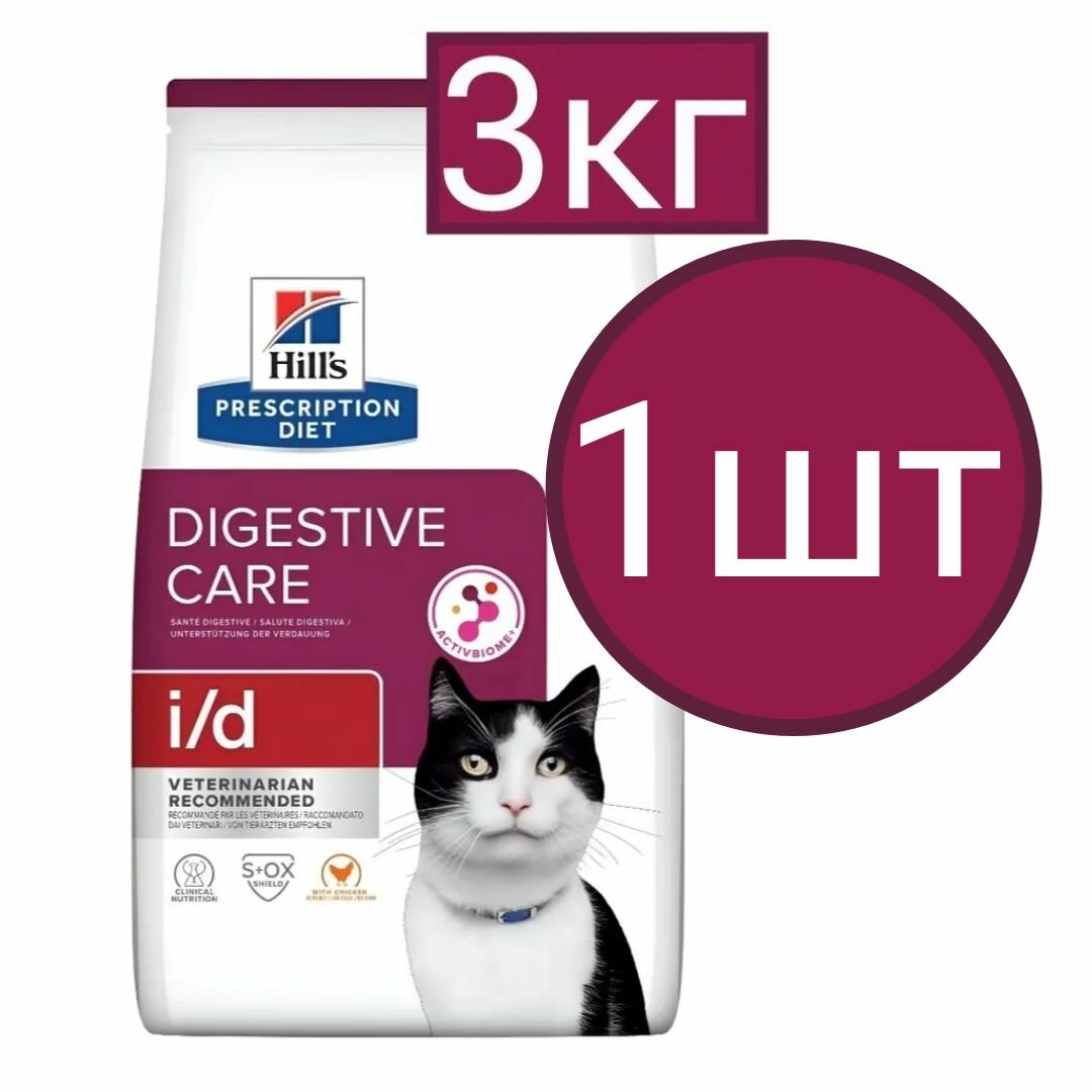 Сухой диетический корм для кошек Hill's Prescription Diet i/d при расстройствах пищеварения, жкт, с курицей, 3кг