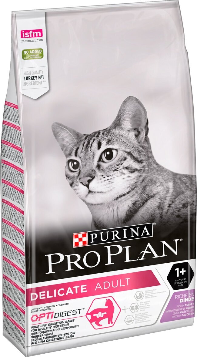Сухой корм Purina Pro Plan Delicate для взрослых кошек с чувствительным пищеварением, с индейкой, 10 кг