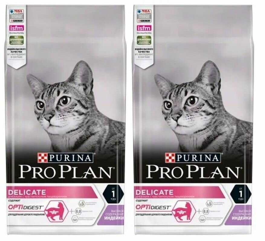 PRO PLAN DELICATE для взрослых кошек с чувствительным пищеварением, с индейкой, 1,5 кг
