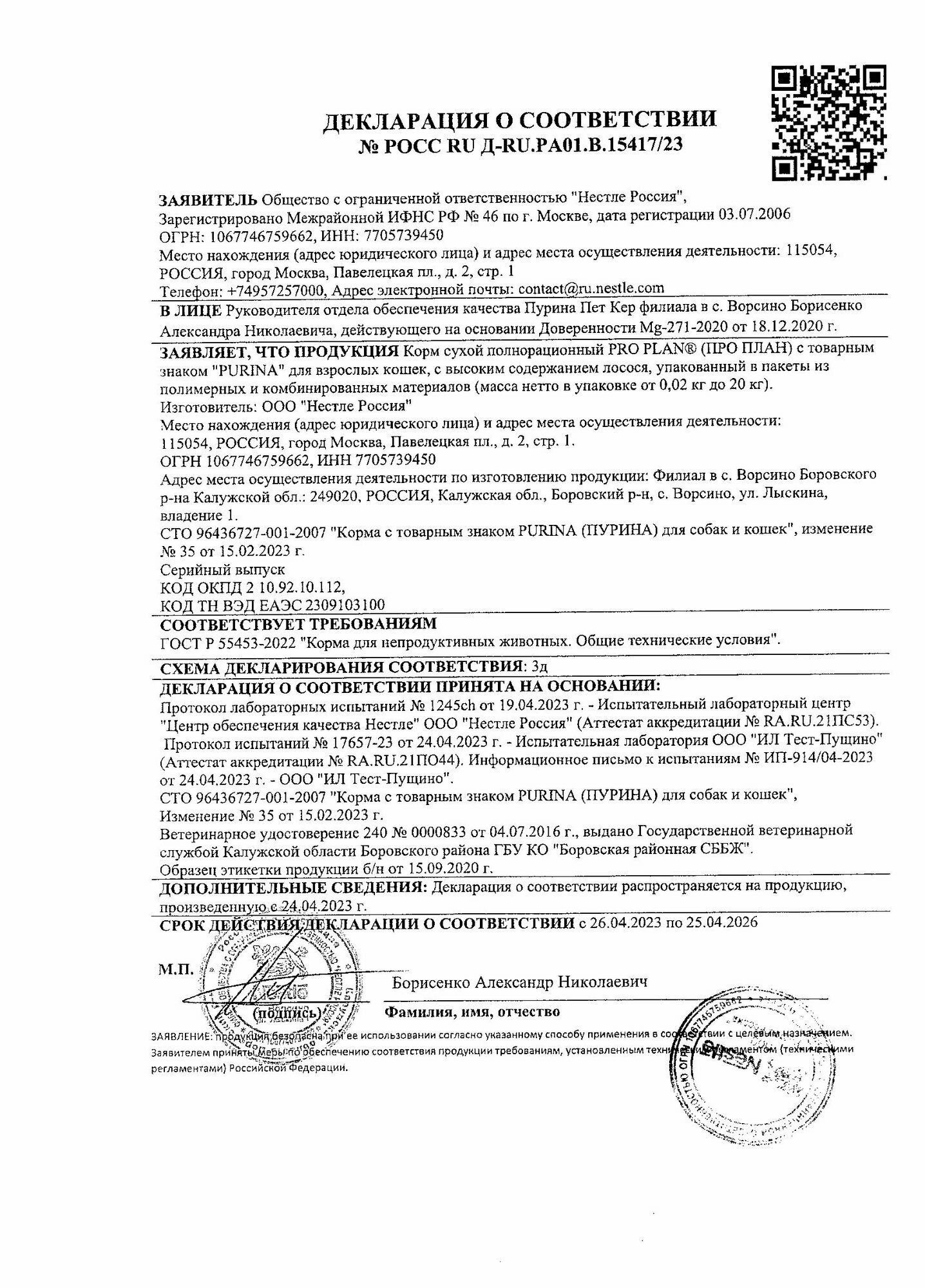 | Дополнительная информация | рекомендации по кормлению, позволяющие поддерживать идеальную форму, могут варьироваться в зависимости от возраста животного, его активности и условий окружающей среды; следите за весом вашей кошки и корректируйте количество даваемого корма; следите, чтобы у вашей кошки всегда была чистая свежая питьевая вода |