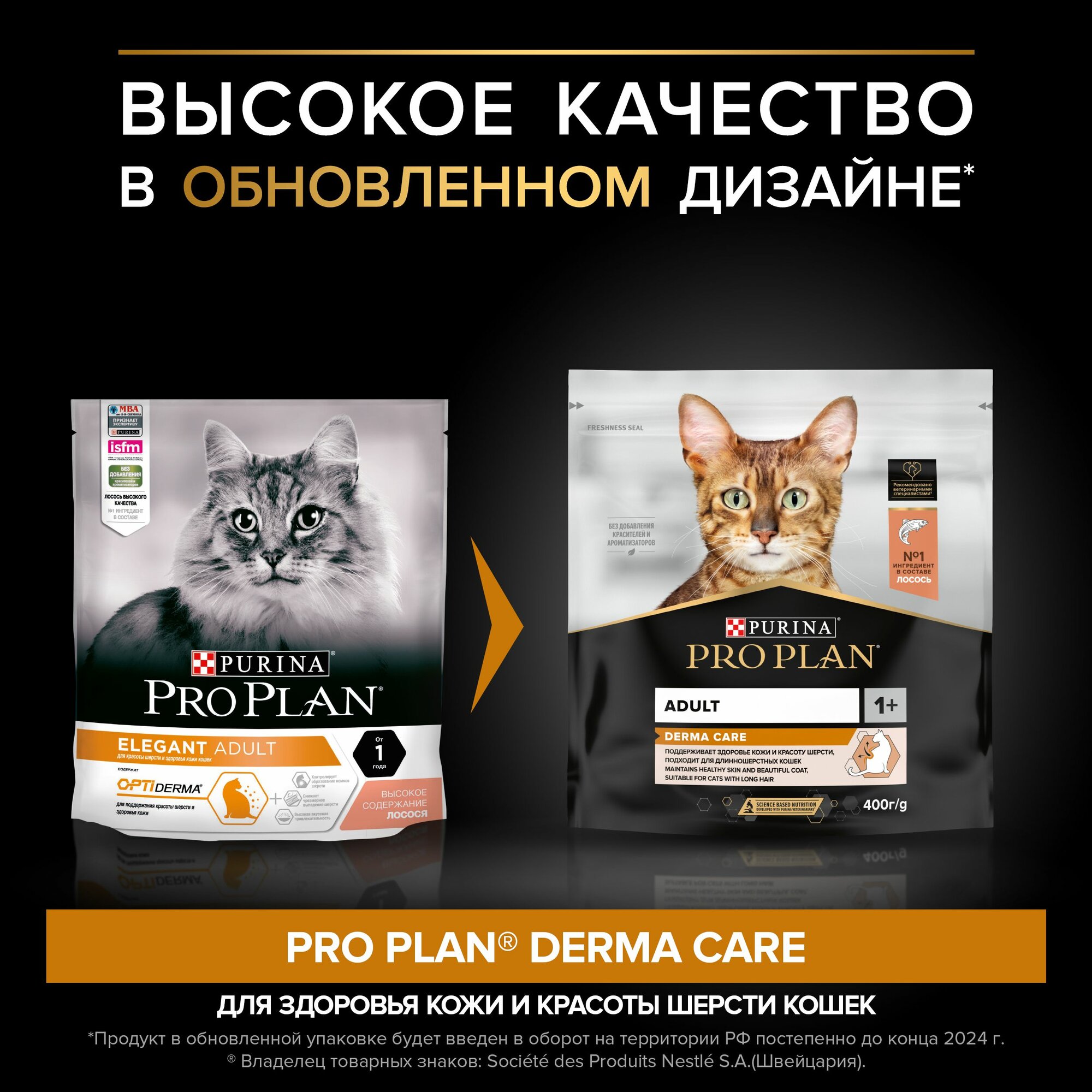 Сухой корм Pro Plan Elegant Adult для взрослых кошек с чувствительной кожей, с лососем, 400 г