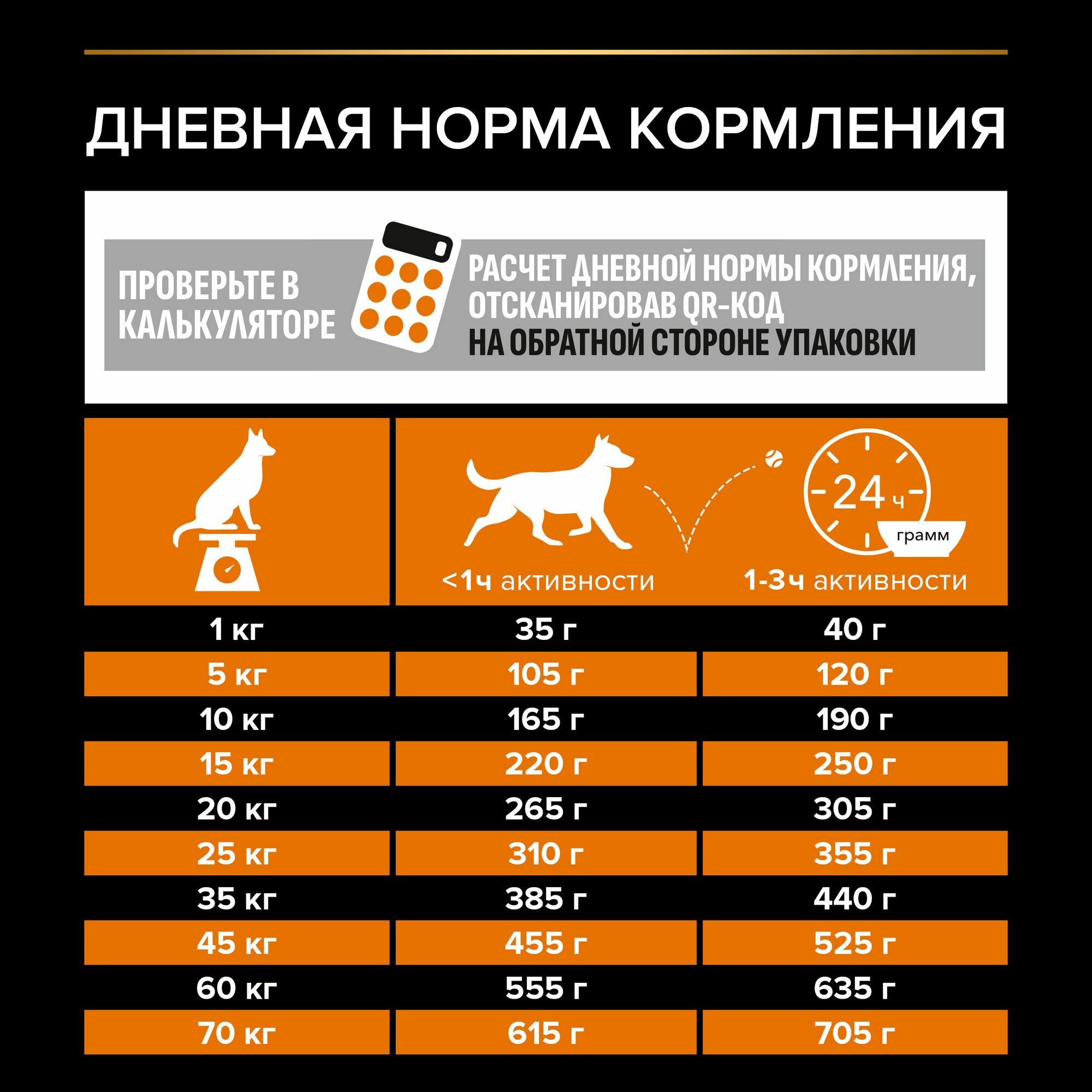 | Дополнительная информация | используйте таблицу для определения суточной нормы кормления вашей собаки; указанные нормы рекомендованы для поддержания собаки в оптимальной физической форме; меняйте суточную норму кормления в зависимости от уровня активности собаки, ее физических особенностей и индивидуальных потребностей; следите, чтобы у собаки всегда была чистая, свежая питьевая вода; для контроля здоровья вашей собаки обращайтесь в ветеринарную клинику на регулярной основе |
