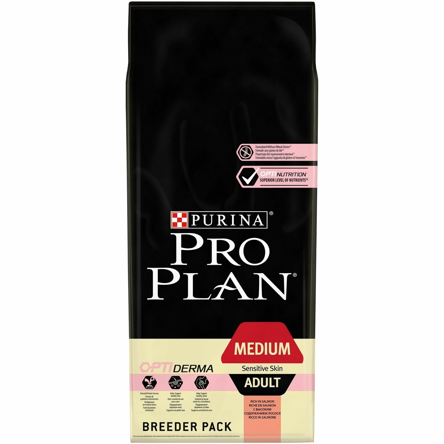 PRO PLAN ADULT DOG OPTIDERMA MEDIUM SENSITIVE SKIN для взрослых собак средних пород с чувствительной кожей с лососем и рисом (14 кг)