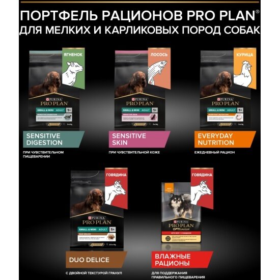 Сухой корм Pro Plan для взрослых собак мелких и карликовых пород с комплексом OPTIBALANCE® с высоким содержанием курицы. Пакет, 3 кг,Для взрослых собак