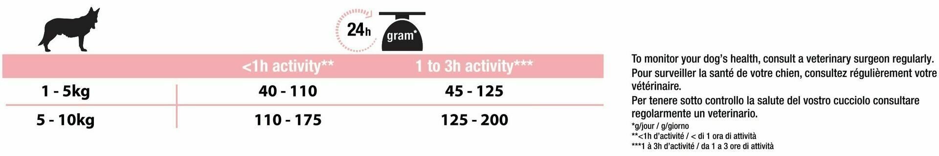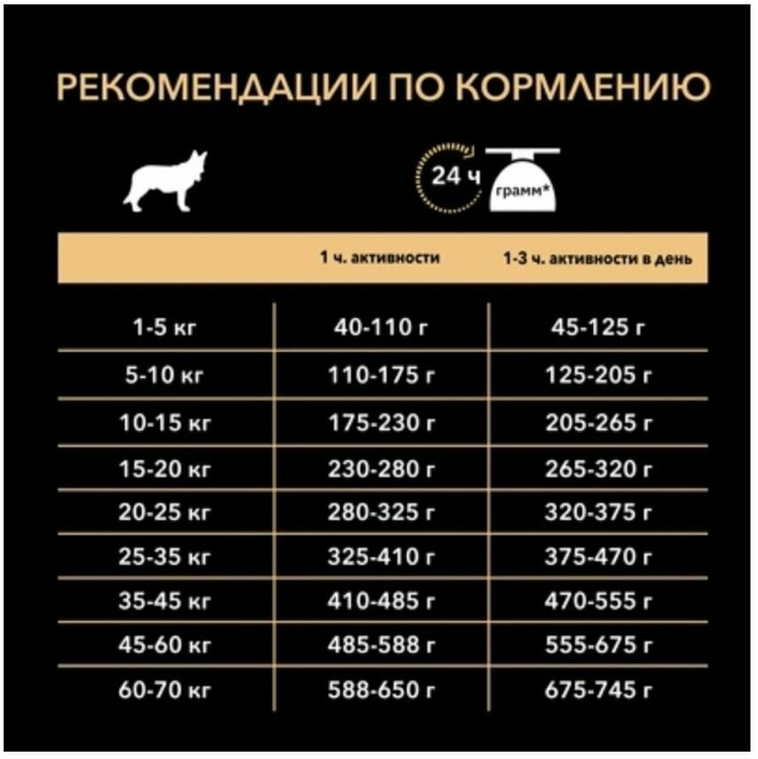 | Дозировка | см. таблицу. Указанные нормы рекомендованы для поддержания собаки в оптимальной физической форме |