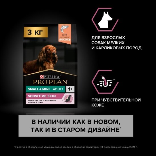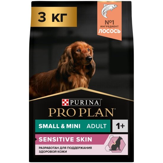 Purina PRO PLAN промо Small&Mini Adult Sensitive Skin для взрослых собак мелких и карликовых пород с чувствительной кожей с лососем 3кг