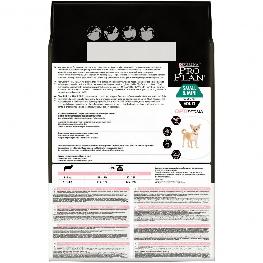 PRO PLAN Adult Small & Mini Sensitive Skin сухой корм для собак мелких и карликовых пород 1 - 10 кг с чувствительной кожей Лосось 3кг