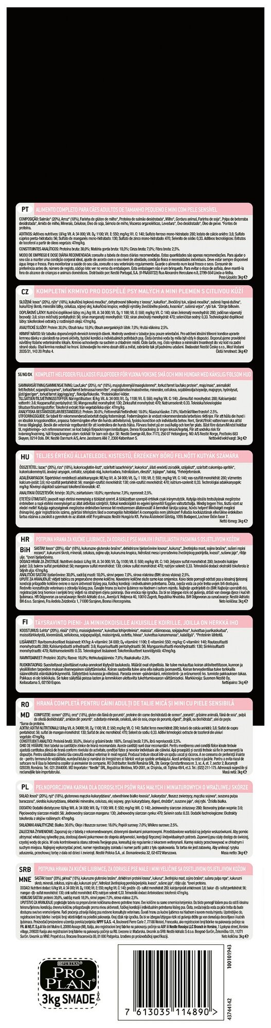 Корм для собак ProPlan 3кг д/мелких/карликовых 1-10кг чувствительная кожа лосось 7613035114890