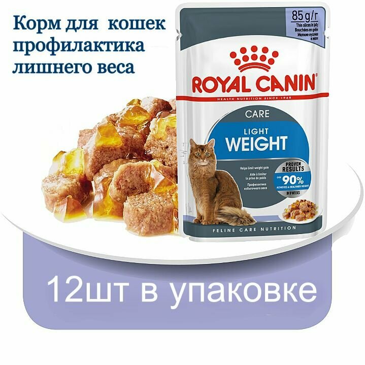 Влажный корм для кошек Royal Canin Light Weight, профилактика избыточного веса 12 шт. х 85 г (кусочки в желе)