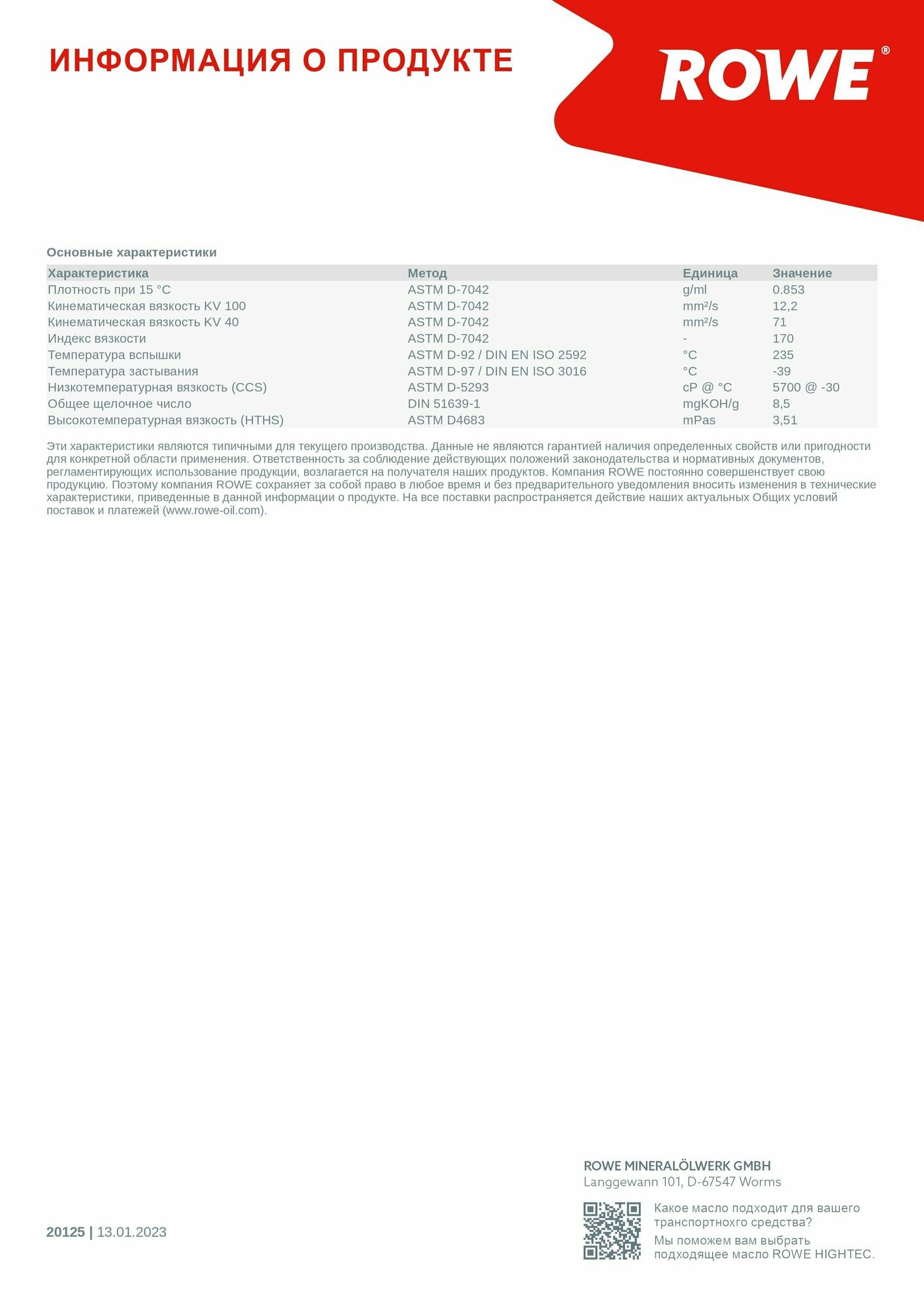 ROWE 20125005099 Масо моторное hc-си