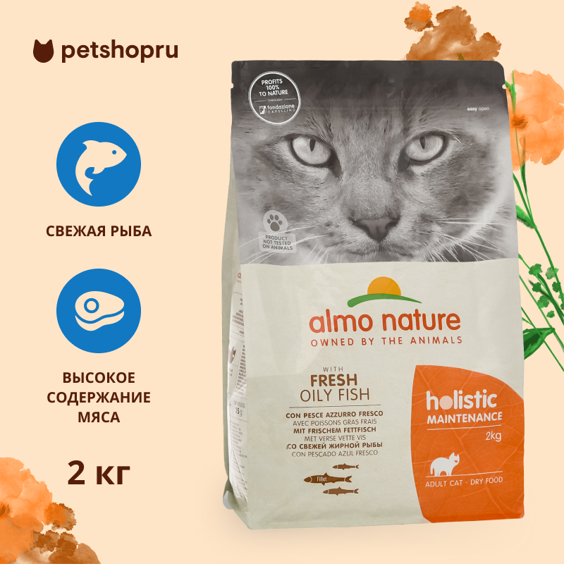 СохранитьALMO NATURE HOLISTIC Сухой корм для взрослых кошек со свежей морской рыбой, Life Maintenance, Fresh Oily Fish , 2 кг интересное: