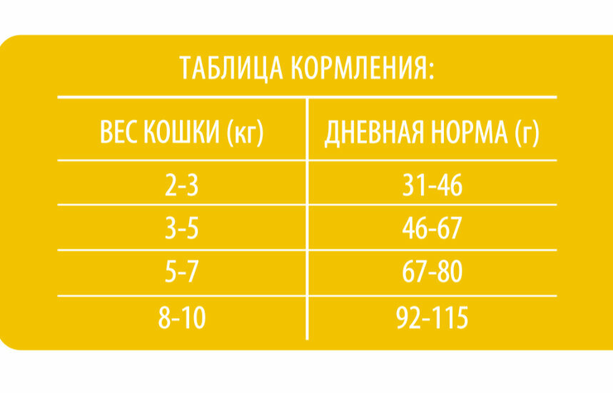 | Дозировка | - 2-3 кг- 55-65 гр - 3-5 кг- 65-80 гр - 5-7 кг- 80-90 гр - 8 ≤ кг- 100 ≤ гр |