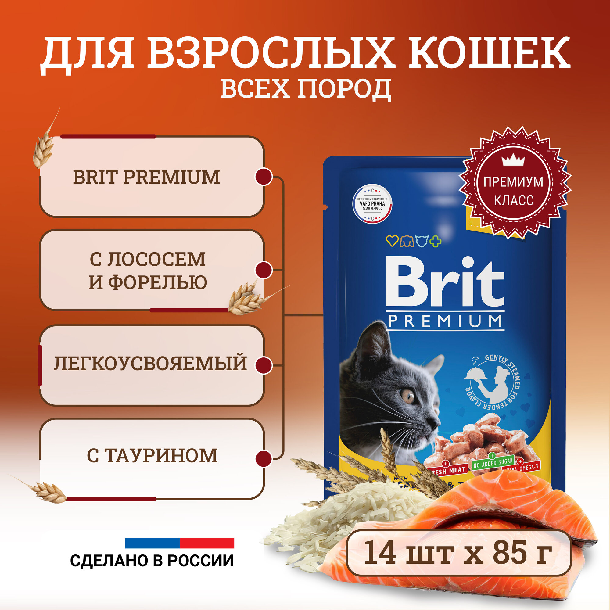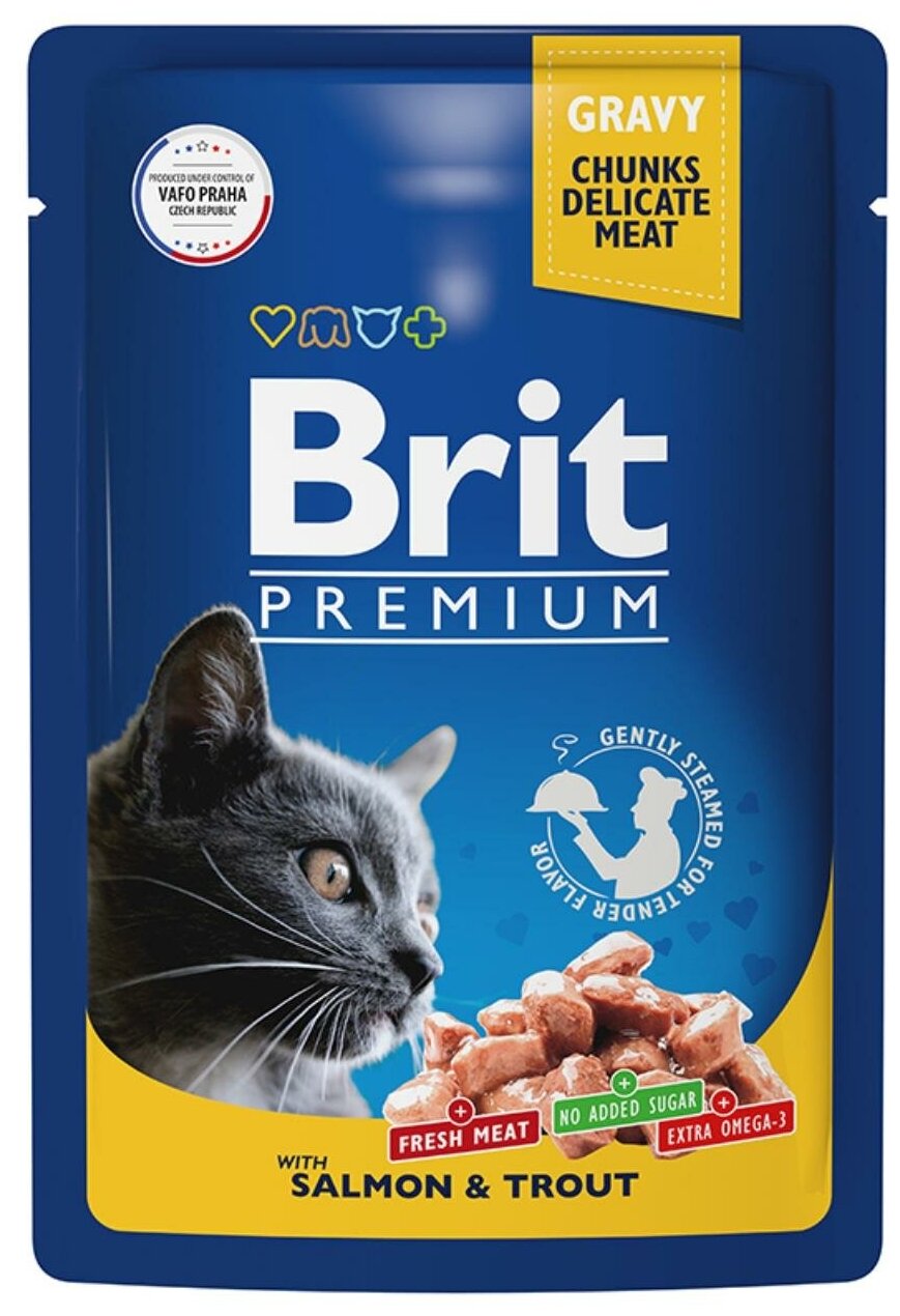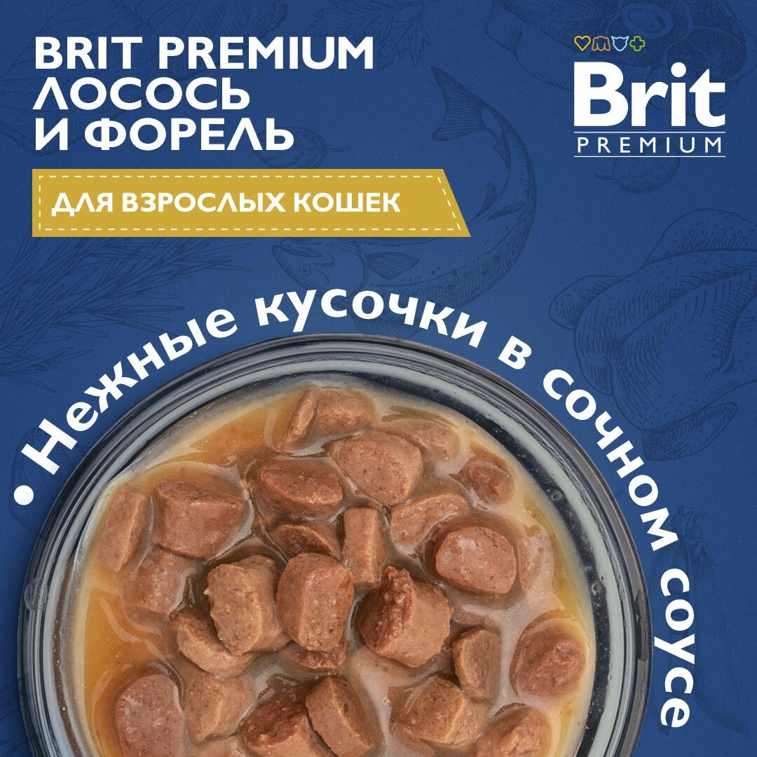 Корм Brit Premium Salmon & Trout (в соусе) для кошек, лосось и форель, 85 г x 14 шт