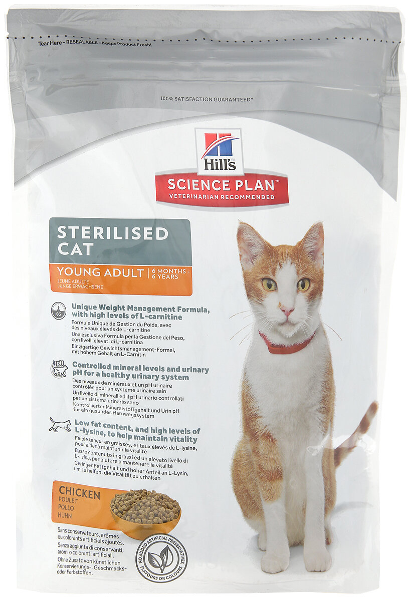 Корм Hill's Science Plan Sterilised Cat для стерилизованных кошек от 6 мес. до 6 лет, курица, 3 кг