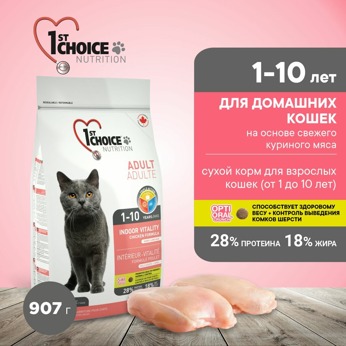 Купить Корм 1st Choice Indoor Vitality для домашних кошек, с курицей, 907 г