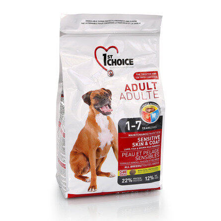 1ST CHOICE DOG ADULT ALL BREEDS SENSITIVE SKIN & COAT для взрослых собак всех пород при аллергии с ягненком, рыбой и рисом (0,35 кг)