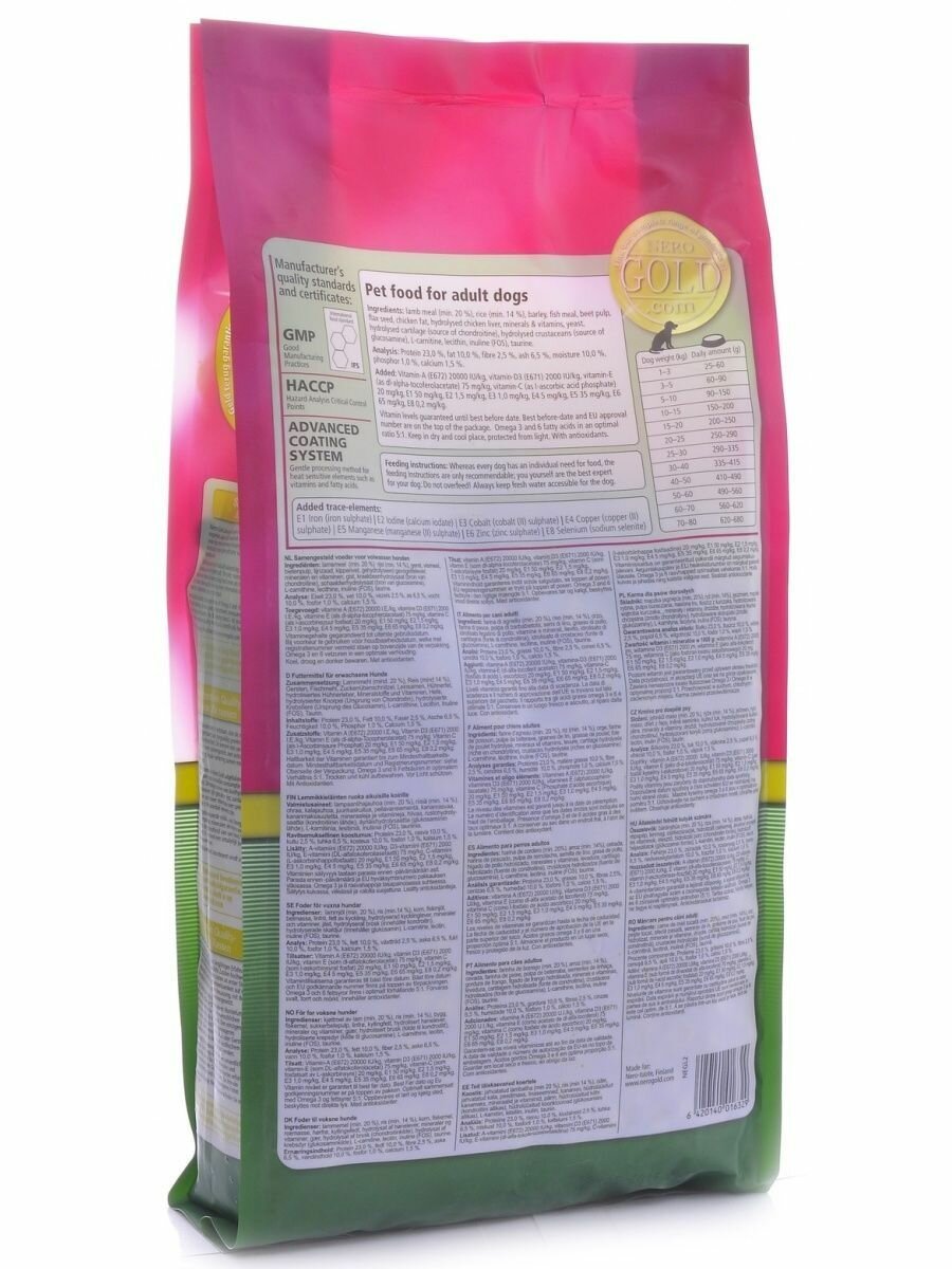NERO GOLD DOG ADULT LAMB & RICE для взрослых собак всех пород с ягненком и рисом (12 + 12 кг)