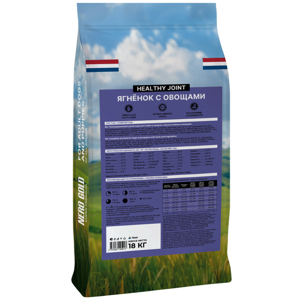 NERO GOLD super premium Сухой корм для собак и щенков всех возрастов с мясом ягненка и овощами, All life Stages, Lamb, HEALTHY JOINT, 18 кг