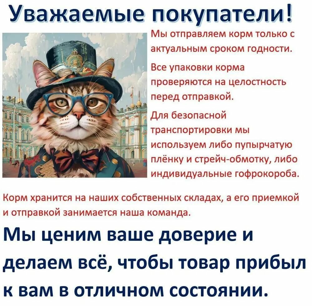 | Минусы: | покупала ранее этот корм в зоомагазине, решила заказать 10кг на яндексе у этого продавца. Как итог у кота острый панкреатит, корм именно этот есть отказался. Купила опять в другом месте , ест с удовольствием. Делайте выводы сами |