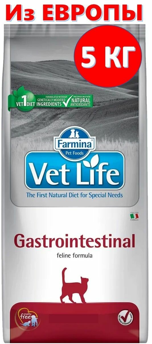 Cухой корм Farmina Vet Life Gastrointestinal для кошек при воспалительных заболеваниях ЖКТ и в восстановительный период, Фармина Вет Лайф лечебный рацион со вкусом курицы, 5кг