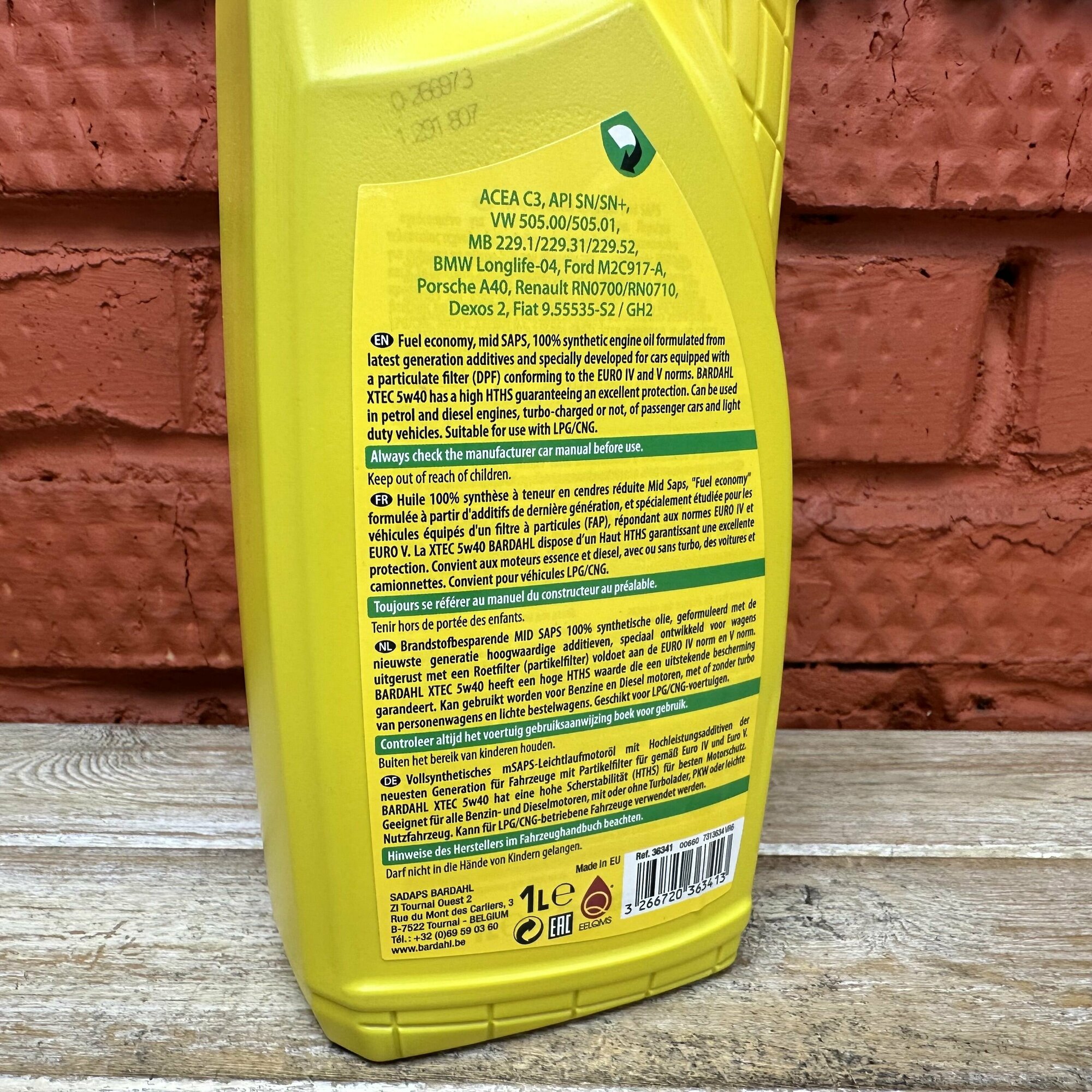 масло моторное bardahl xtec 5w-40 c3 синтетическое 1 л 36341