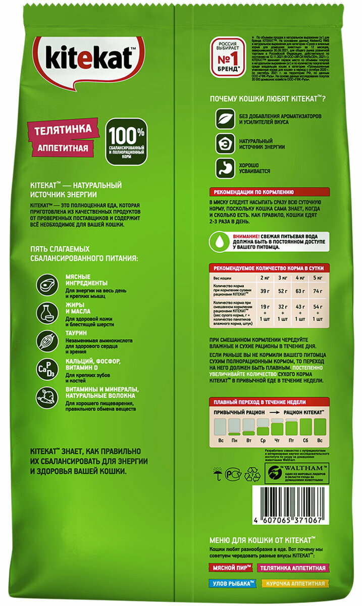 Корм для кошек сухой Kitekat Телятинка аппетитная, для взрослых кошек, 800 г