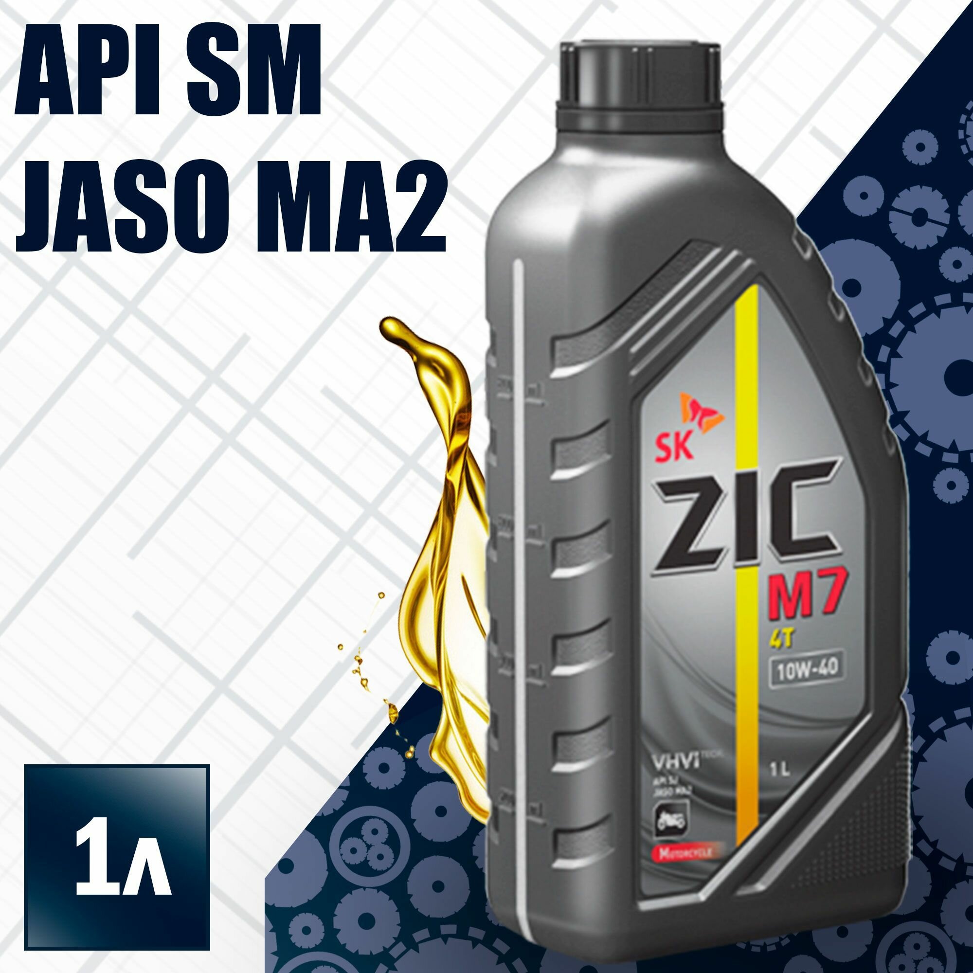 Масло для мототехники ZIC M7 4T 10w40, синтетическое, API SL, JASO MA2, 4-тактное, 1л, арт. 132027