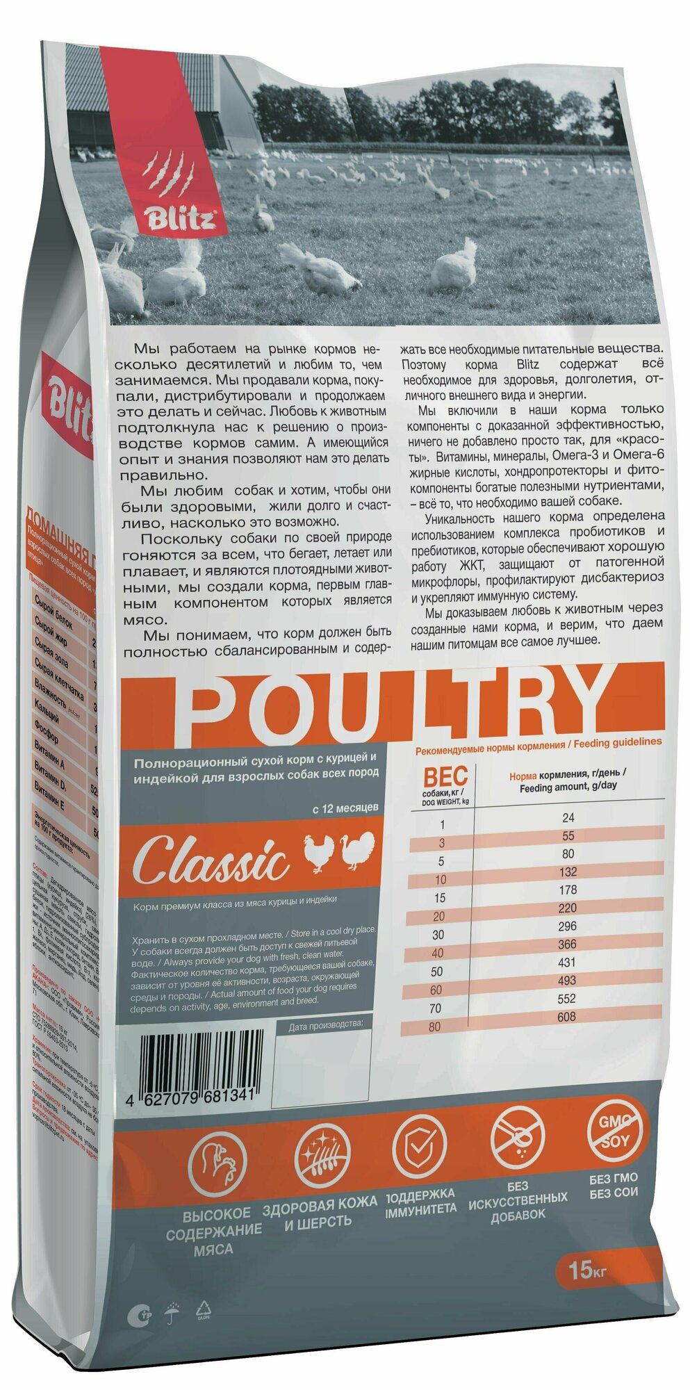 Купить Blitz Adult Dog Poultry Classic сухой корм для взрослых собак всех пород, домашняя птица 15 кг