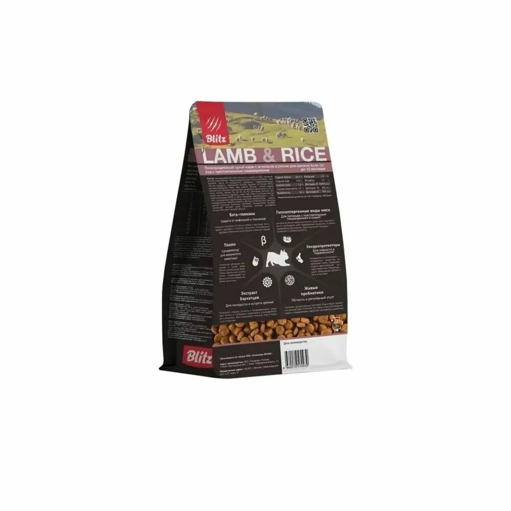 Корм сухой для щенков BLITZ Sensetive Puppy с ягненком и рисом, 15 кг