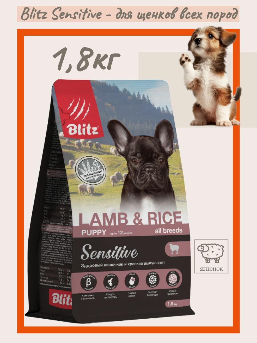 Сухой корм для щенков Blitz 1,8кг Puppy Sensitive Lamb&Rice Ягненок и рис