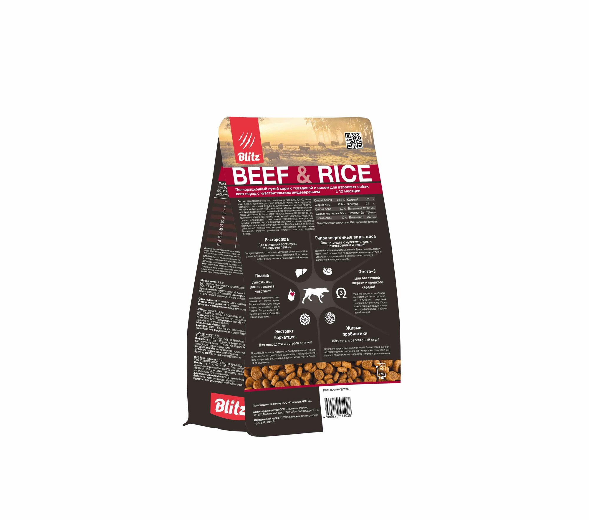 СохранитьBlitz Sensitive Beef & Rice Adult Dog All Breeds 1,8кг с говядиной и рисом сухой корм для взрослых собак всех пород интересное: