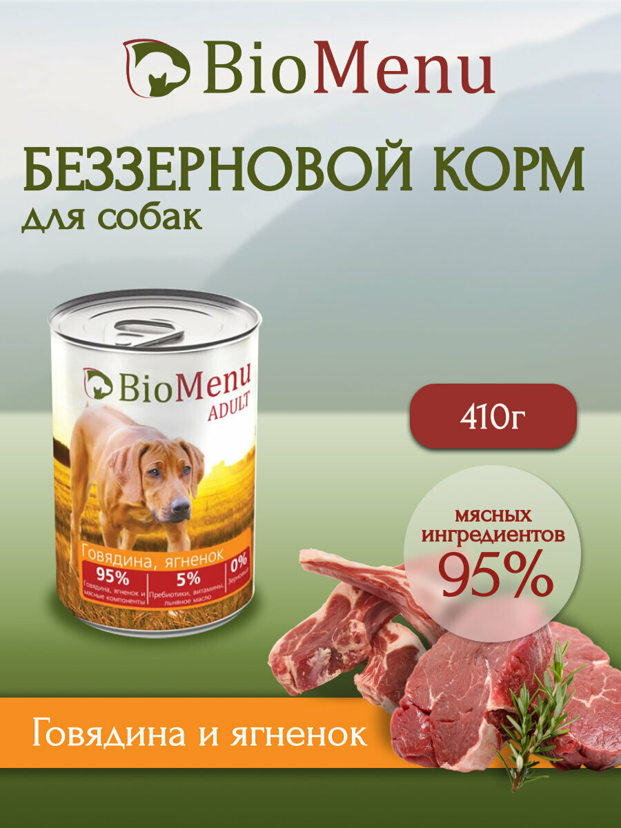 BioMenu ADULT Консервы для собак Говядина/Ягненок 95%-мясо 410г х 12 шт