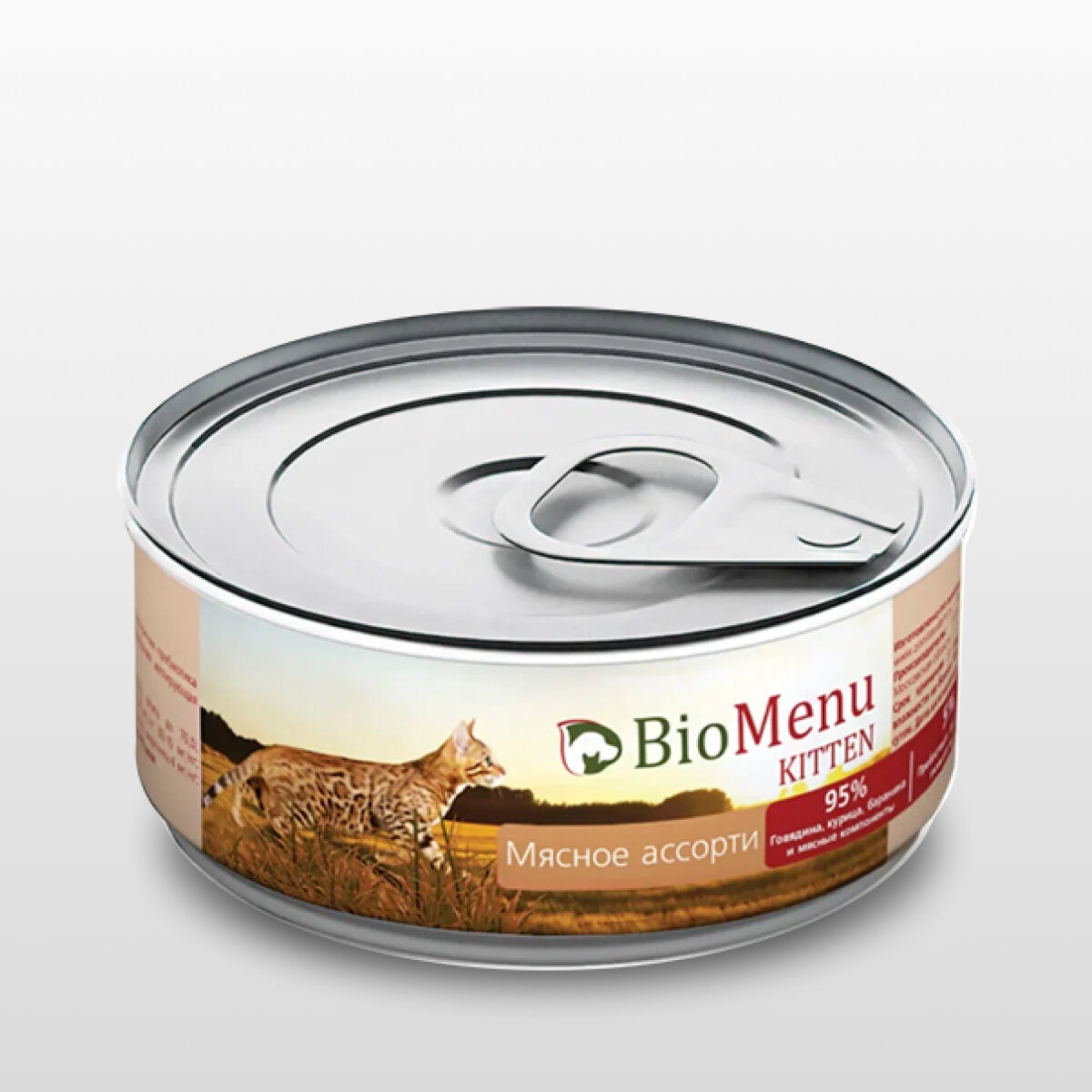 BioMenu KITTEN Консервы для котят паштет Мясное ассорти 95%-мясо 100гр