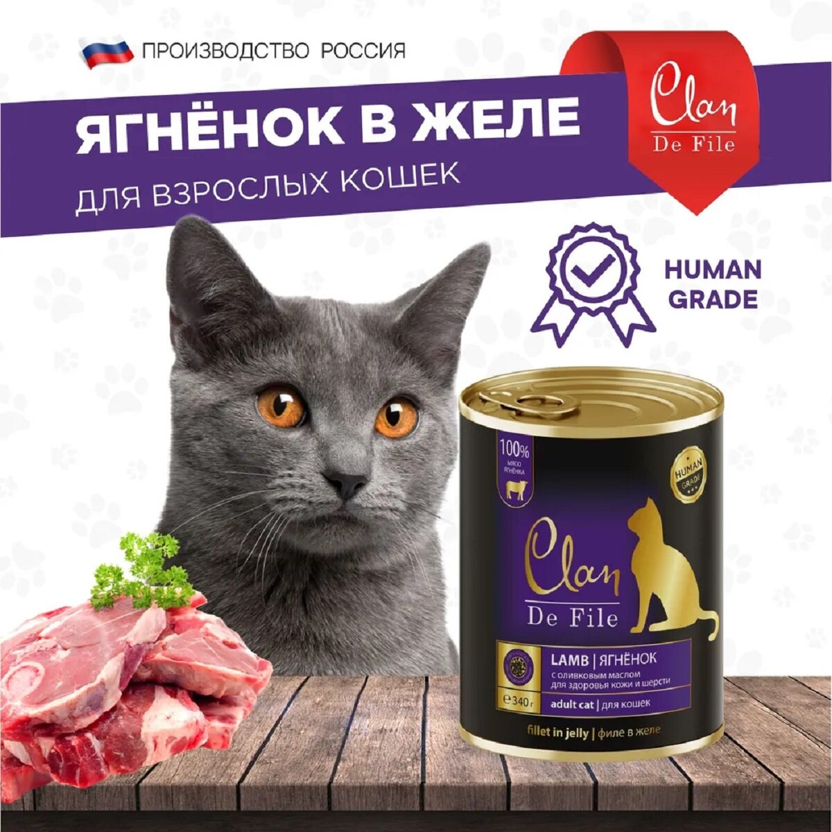 CLAN DE FILE монобелковые для взрослых кошек с ягненком и оливковым маслом (340 гр х 12 шт)