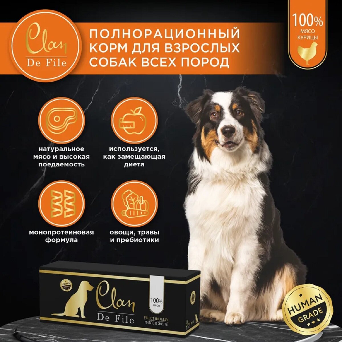 Влажный корм для собак CLAN De File, беззерновой, курица 100 г