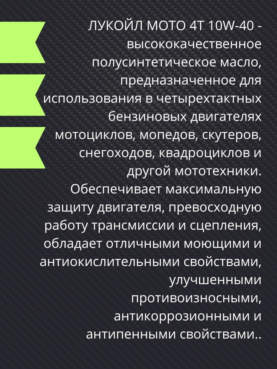 СохранитьМасло моторное ЛУКОЙЛ мото 4Т 10W-40 1 л интересное: