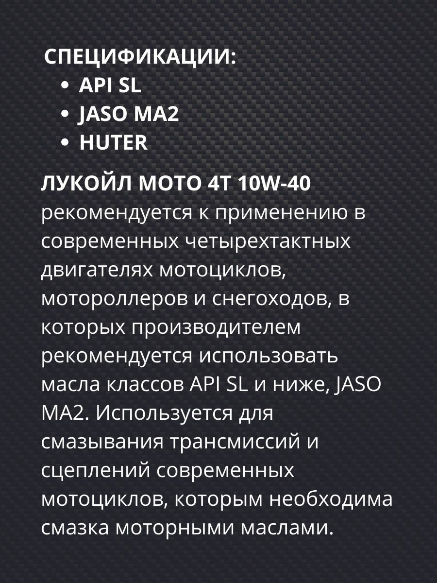 масло лукойл 4-х тактное 10w40 api sl jaso ma2 4л п/с