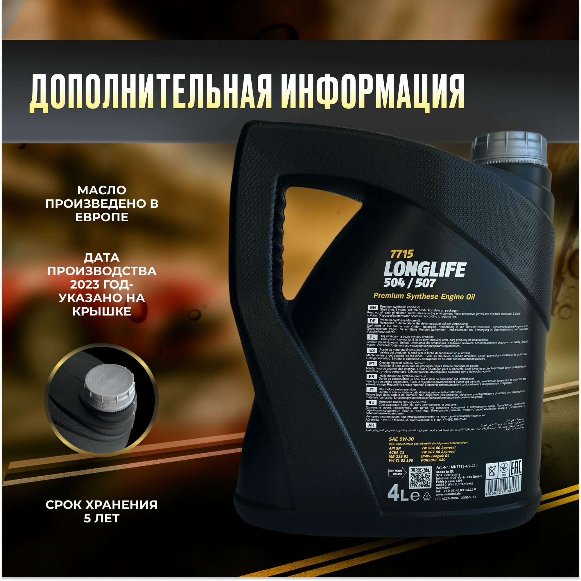 Синтетическое моторное масло Mannol 7715 Longlife 504/507 5W-30, 1 л, 1 кг, 1 шт